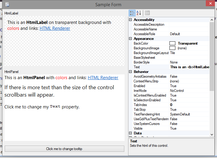 HtmlPanel/HtmlLabel controls playground
