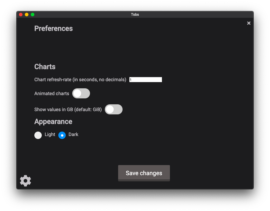With customizable options like refreshrate, dark- and light mode, drag- and drop alignment of the charts and some more, you can make Tobs your very own experience.