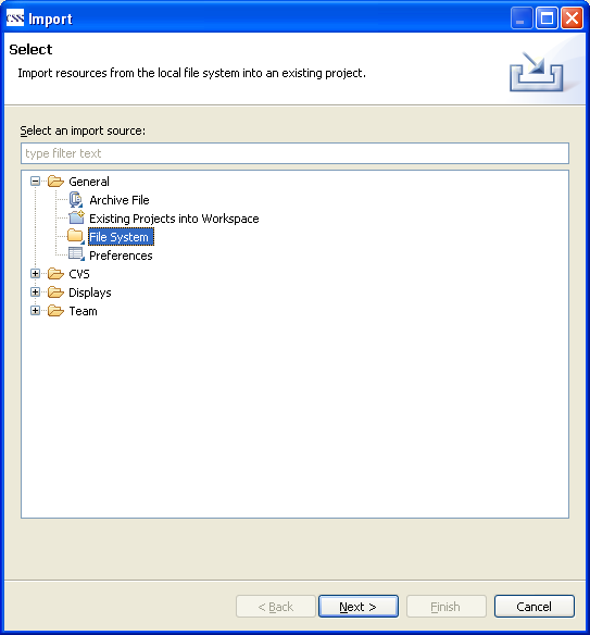 followed by the selection of the Import Wizard