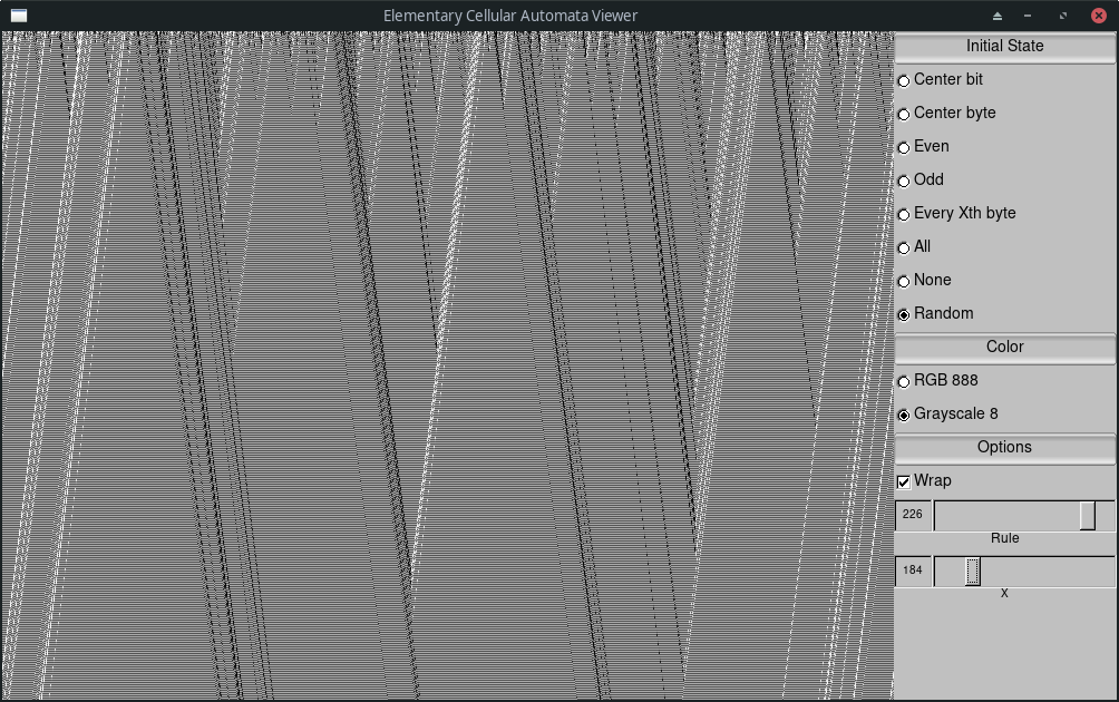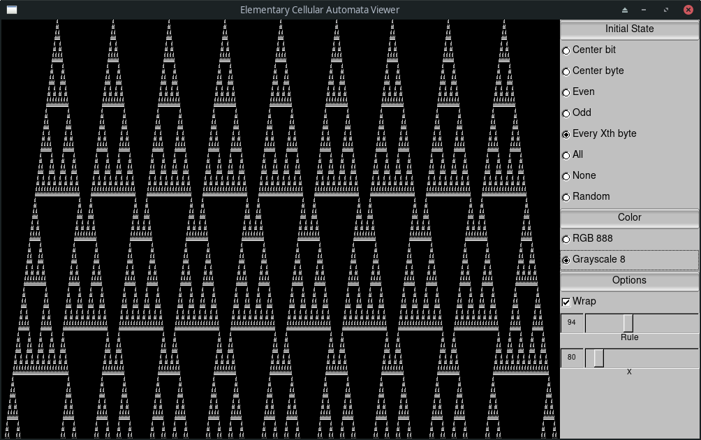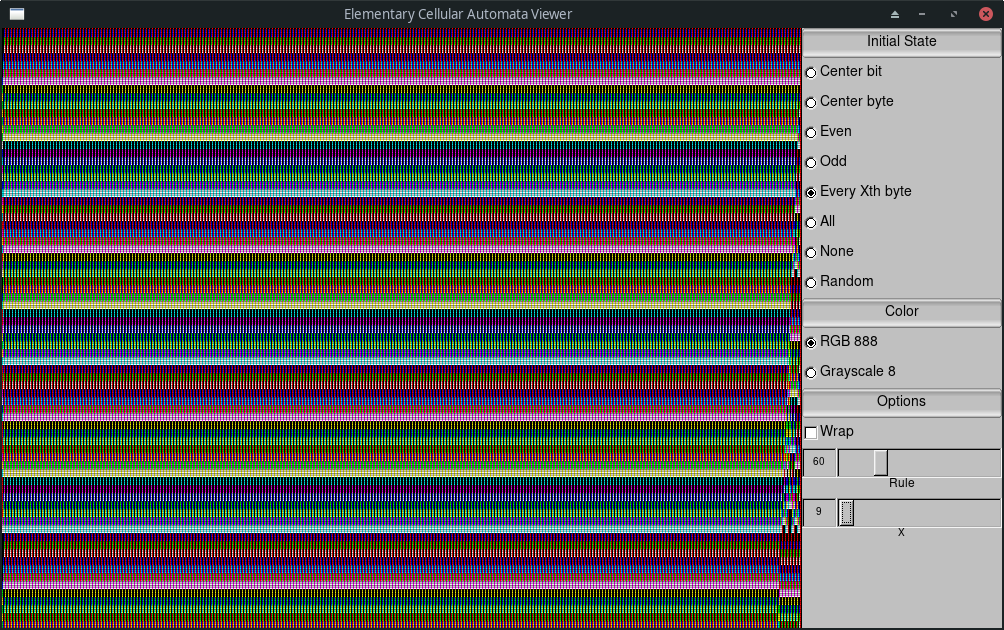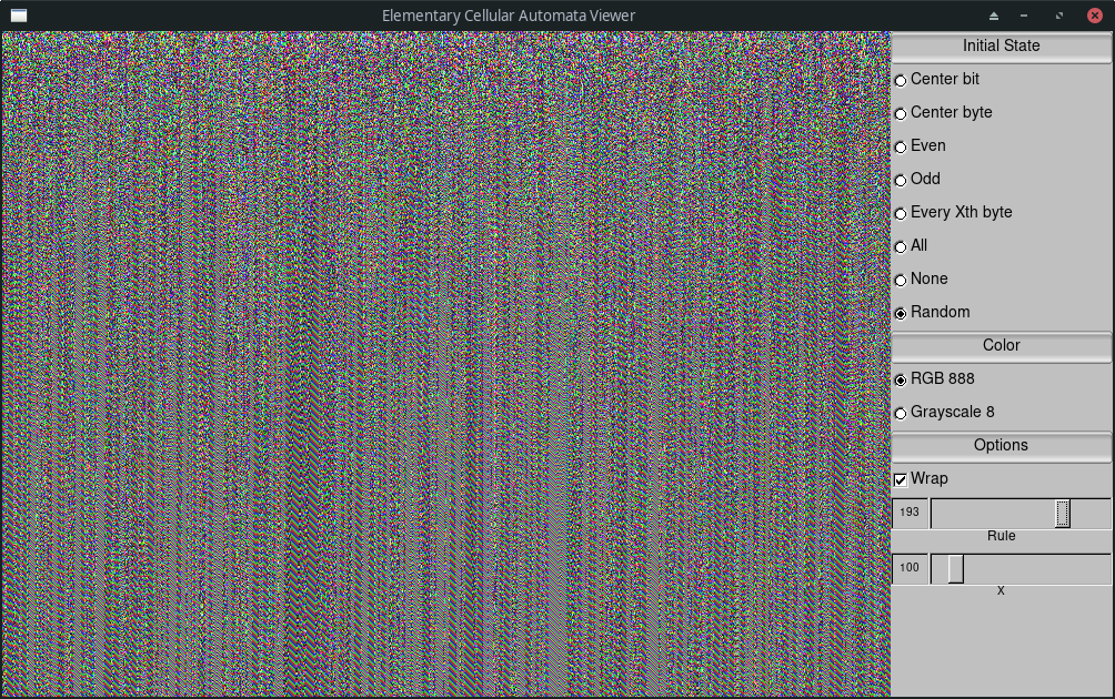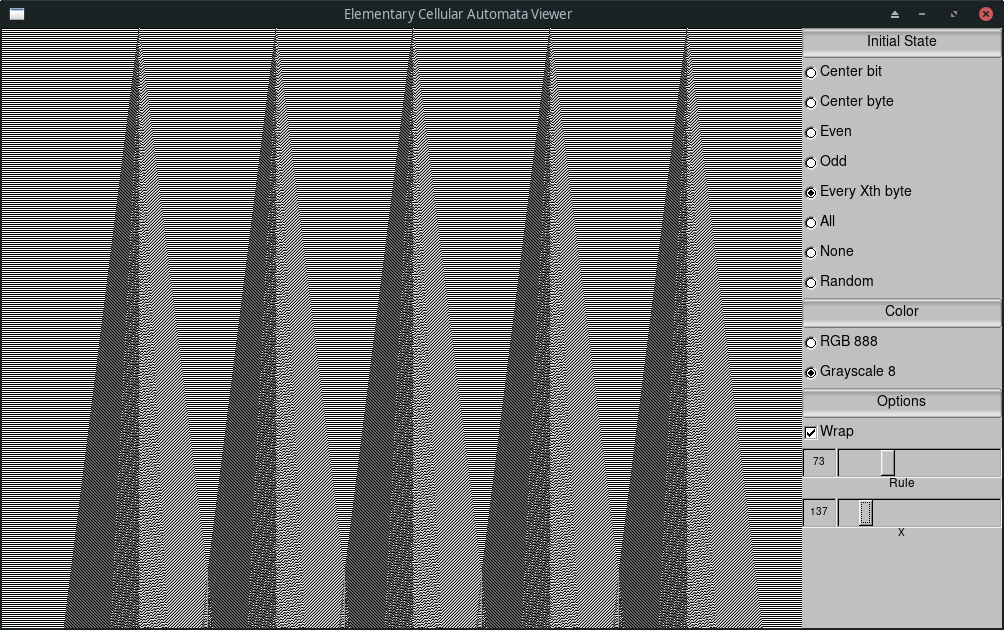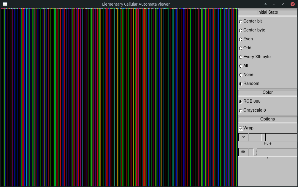 View elementary cellular automata in a GUI window with UI for parameters and tuning.