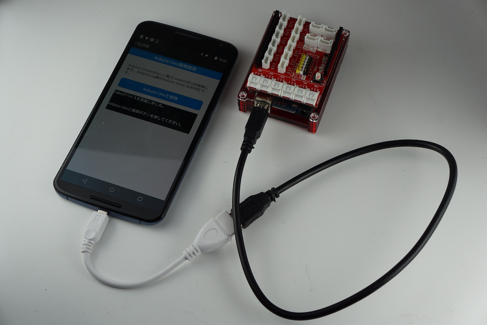 AndroidデバイスとArduino/GenuinoをUSBで接続します。