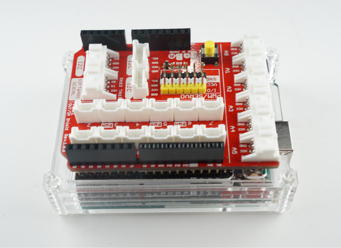 Arduino/GenuinoにFaBo Out/In Shieldを装着する事で、FaBoのモジュール群にアクセスできるようになります。