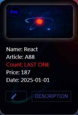 - кнопку показать/скрыть описание, если соответствующее поле было добавлено при создании товара. По нажатии кнопки в карточке открывается/закрывается секция, содержащая информацию о товаре
