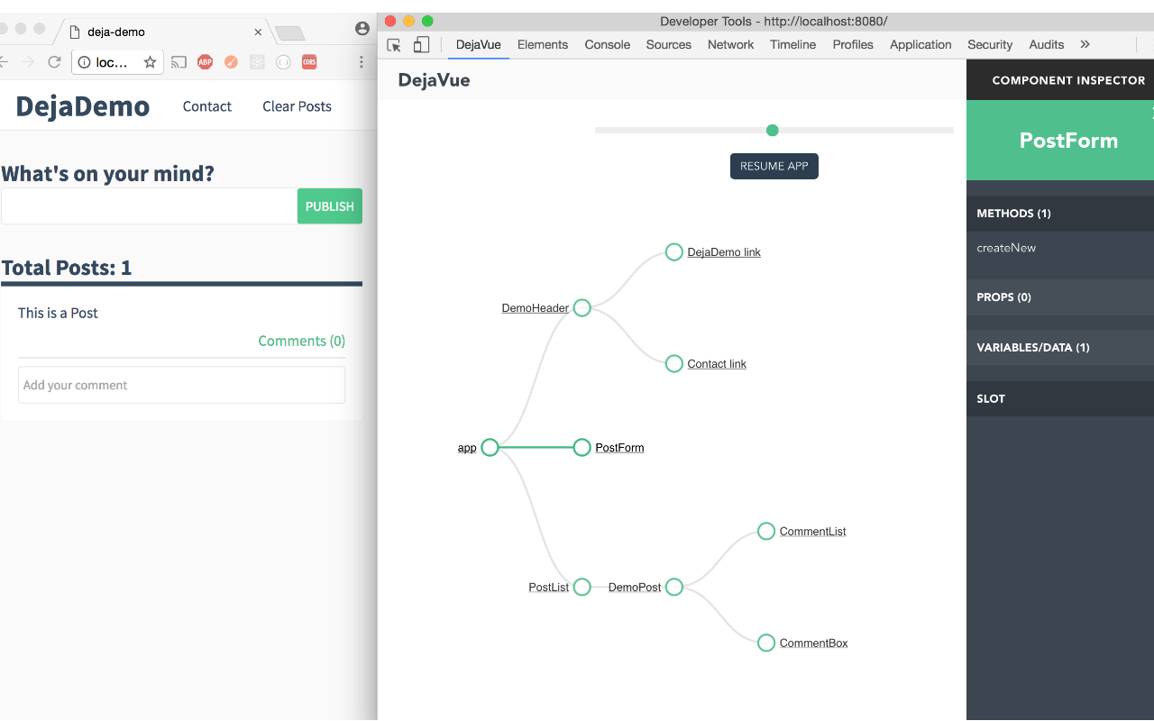4. Time Travel - Move backwards and forwards through your state changes and see both the tree and your application update