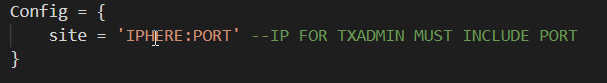 config.luain the main directory- Add your txAdmin link like this: IP:PORT