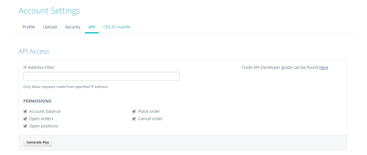 Under API tab, mark all 5 boxes under PERMISSIONS and click on Generate Key