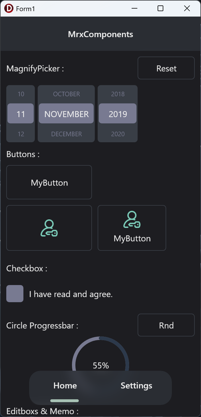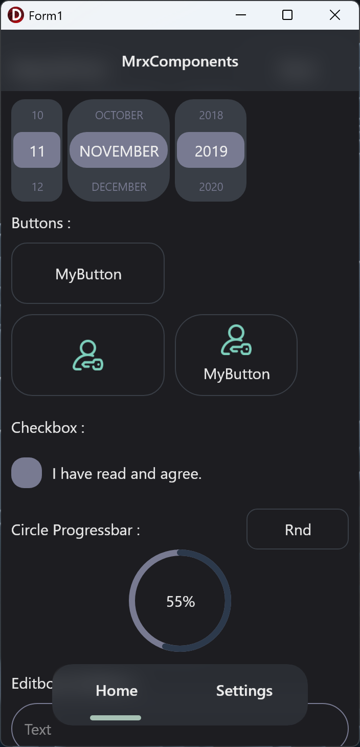 MrxComponent, Delphi FMX tabanlı uygulamalarda platformlar arası (Windows, macOS, iOS, Android) tutarlı bir kullanıcı arayüzü ve davranış standardı oluşturmak amacıyla geliştirilmiş bir bileşen setidir.