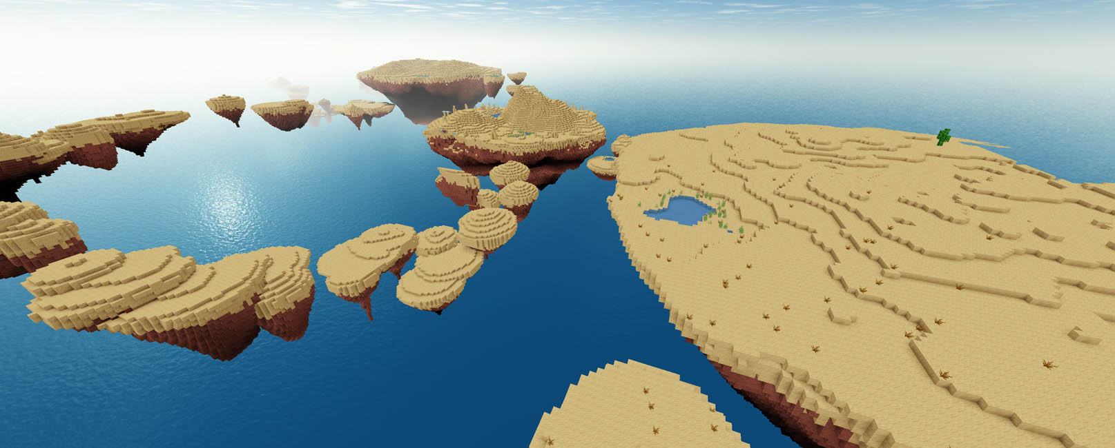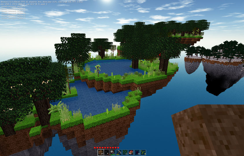 This can be run with or without a normal terrain mapgen, allowing pure skylands or an exotic addition to the landscape.