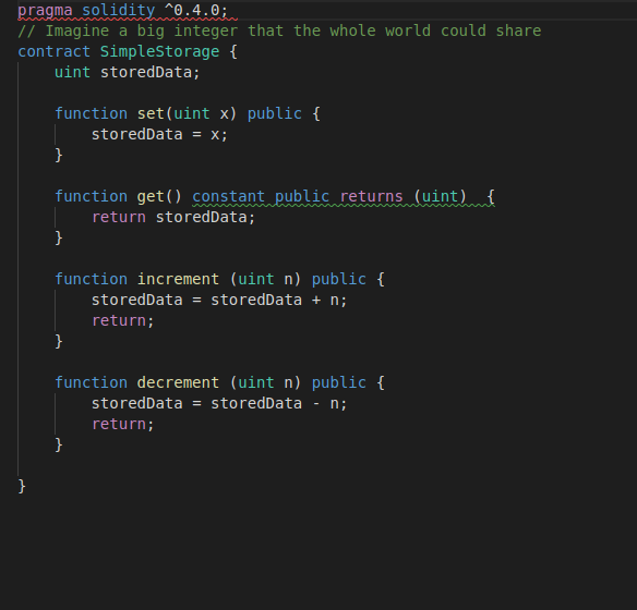 Here is an example of a simple smart contract where we use simple set and get functions to increment and decrement some data.