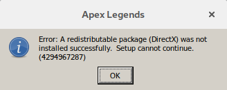 Directx fails to install when finalizing a download: