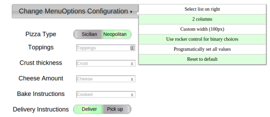 });This demo illustrates using the using multiple MenuOptions controls, including the rocker control