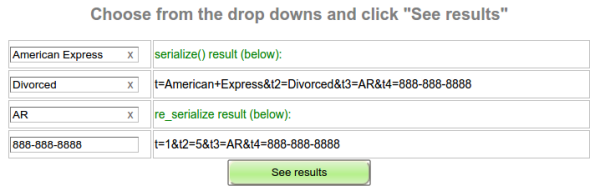 If you load MenuOptions multi-column autocomplete using an object, the value will be written into the 'menu_opt_key' attribute. jQuery's serialize will not pick up the value of a MenuOptions multi-column autocomplete (menu_opt_key) To account for this, wrap serialize() with re_serialize, like this: