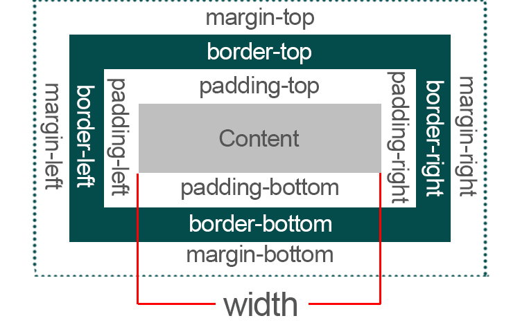 margin- Определяет положение элемента относительно границ родителя.padding- Определяет расстояние от краёв элемента до контента внутри.width- Определяет ширину элемента.- Если нужно подвинуть что-то относительно одного края, то используется