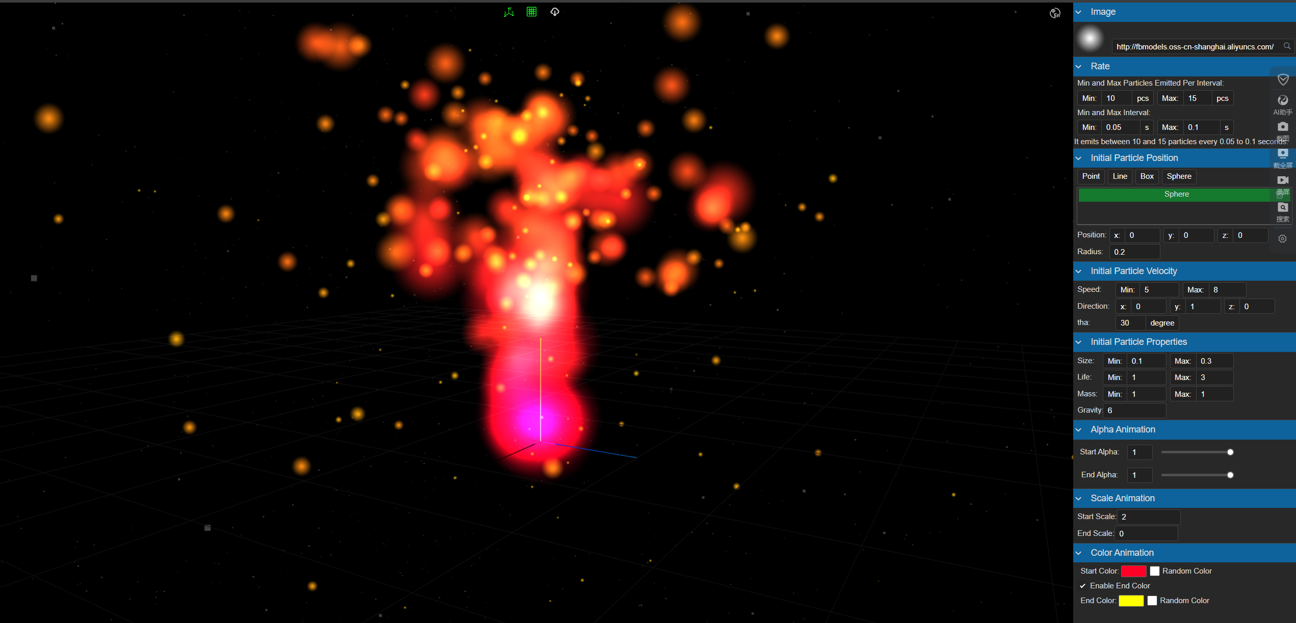通过这个项目,用户可以导入由我们自定义的ParticleDesigner在线编辑器生成的JSON文件。该编辑器允许用户以直观的方式设计和自定义粒子效果,从简单的爆发到复杂的动画。一旦JSON文件被加载,粒子效果就会使用Three.js进行3D图形渲染,并使用Three.Proton.js进行粒子系统管理,在浏览器中实时呈现。