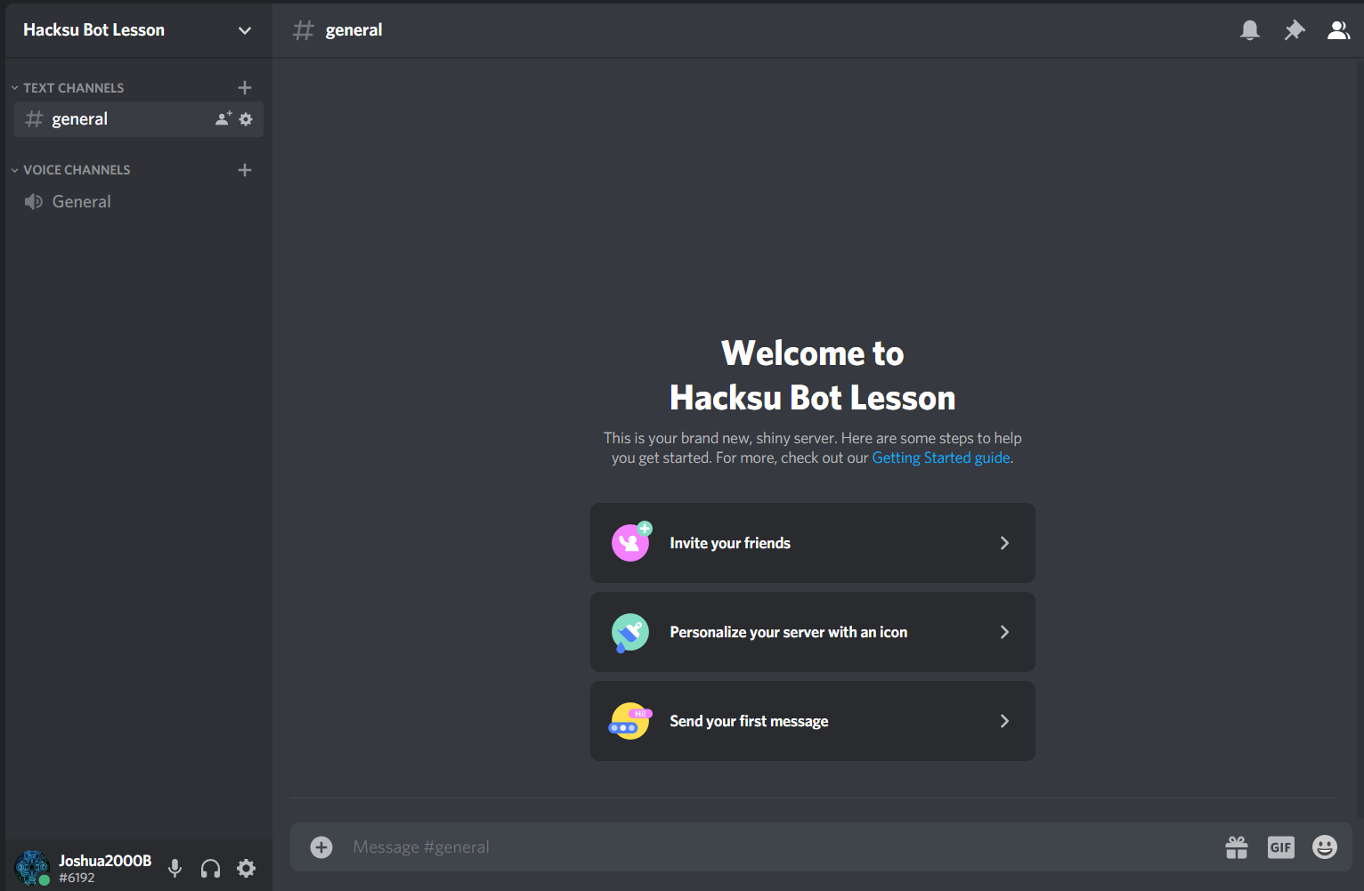 Now that your bot is in a server, we can make sure it works by starting our program up.