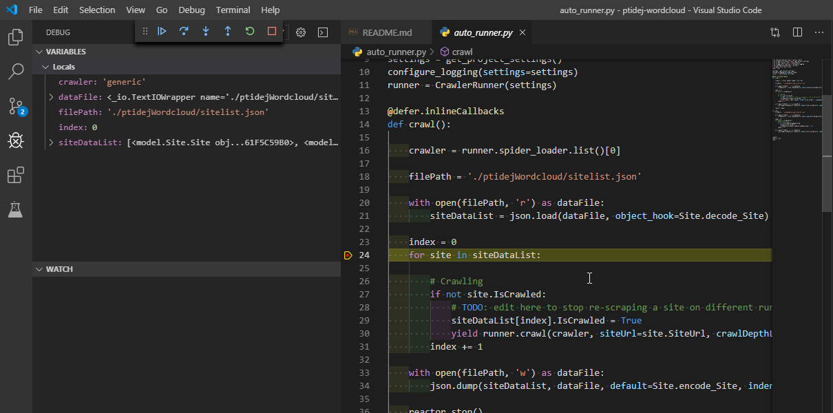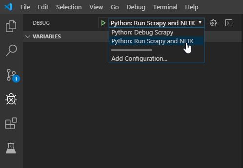 - Choose Python: Run Scrapy and NLTK at debug menu list