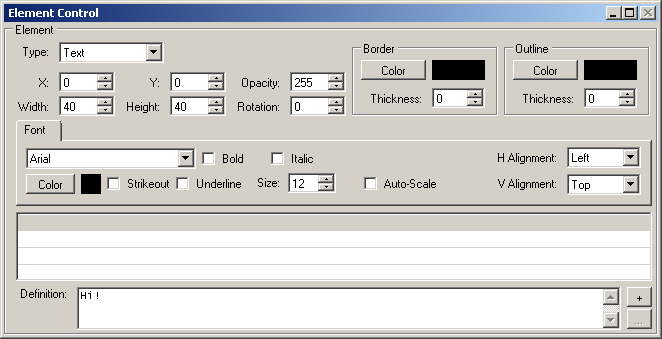 Change with X/Y/Width/Height -- You can adjust the element attributes in the Element Control window for fine tuning.