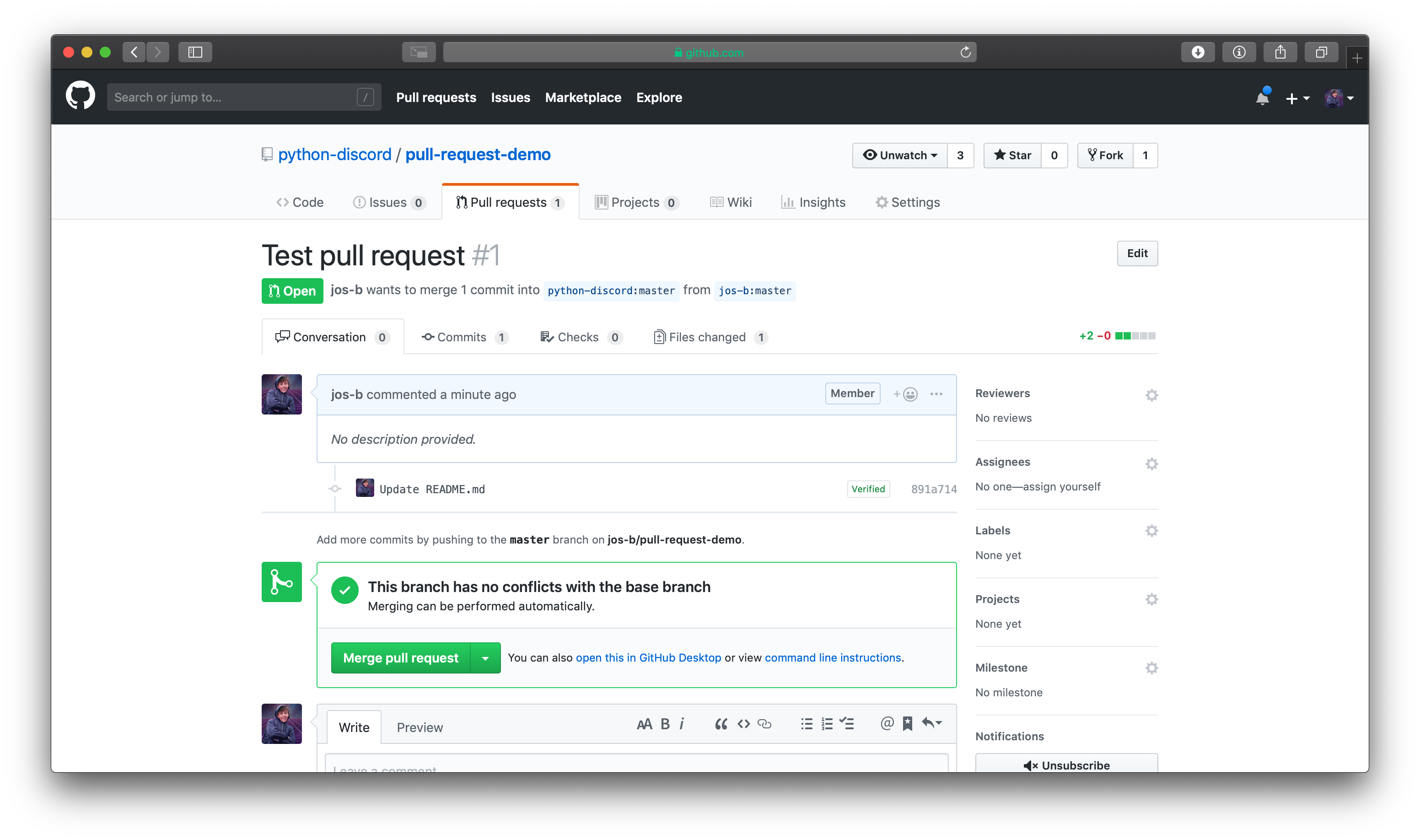 That's it! You've opened your pull request and should see something like this: