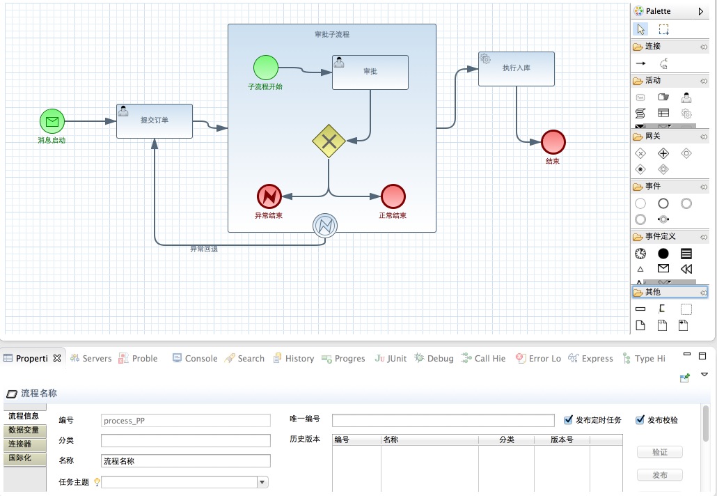 • 强大的基于BPMN2.0建模的Eclipse插件设计器
