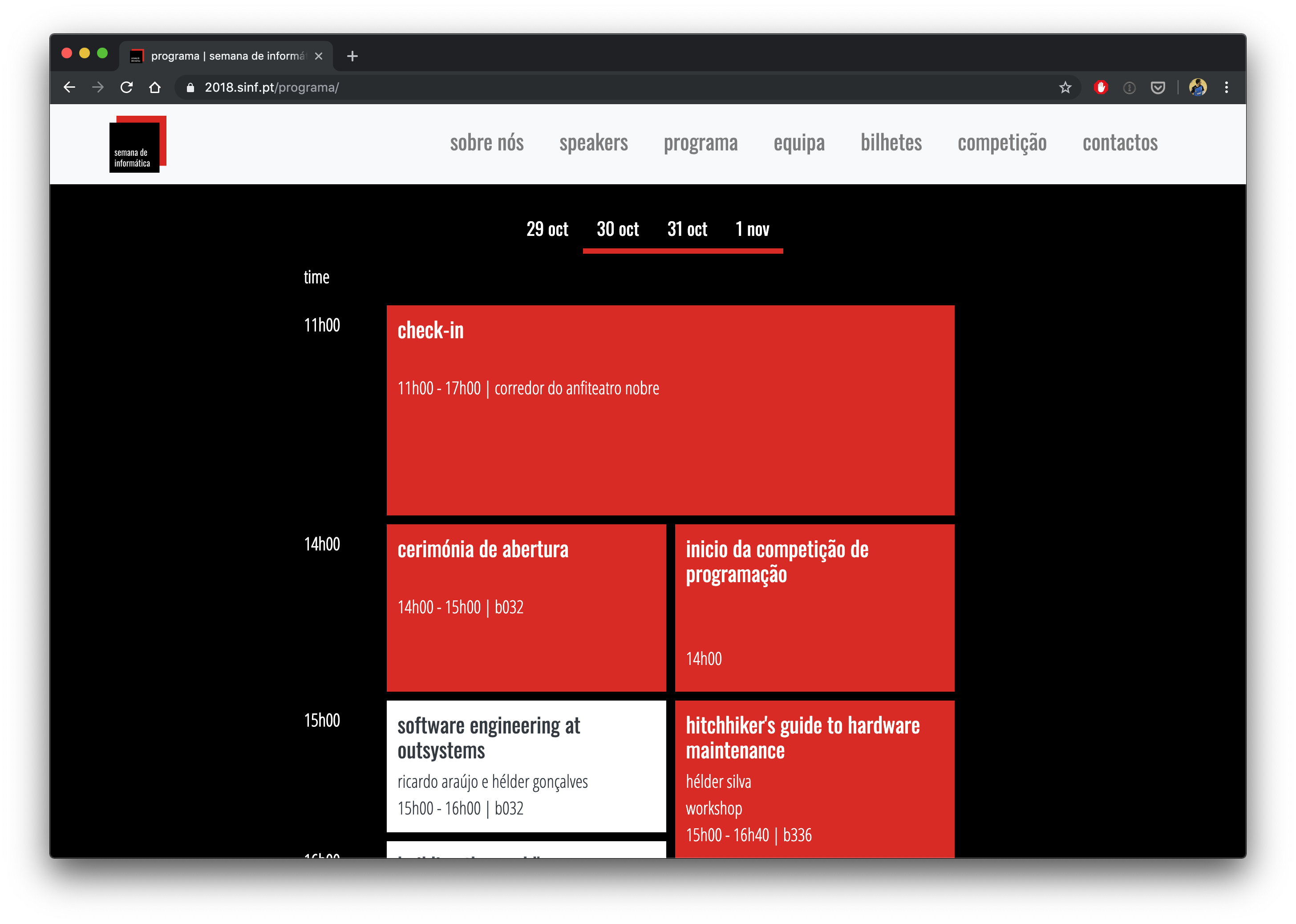 Website for the 2018 edition of Semana de Informática, which took place at Faculty of Engineering of the University of Porto from October 29 to November 1st, 2018.