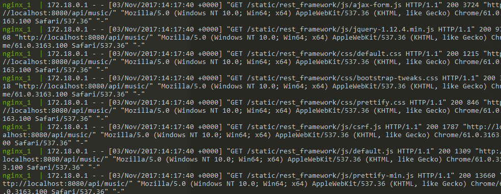localhost 172.30.0.2 - - [06/Apr/2022:04:45:05 +0000] "GET /api/ HTTP/1.1" 200 1722 "-" "Mozilla/5.0 (X11; Ubuntu; Linux x86_64; rv:98.0) Gecko/20100101 Firefox/98.0" 0.306