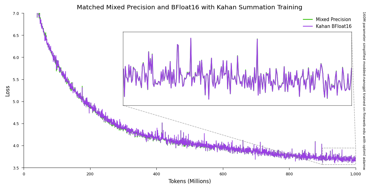 optimi optimizers can match the performance of mixed precision when training in pure BFloat16 by using Kahan summation.