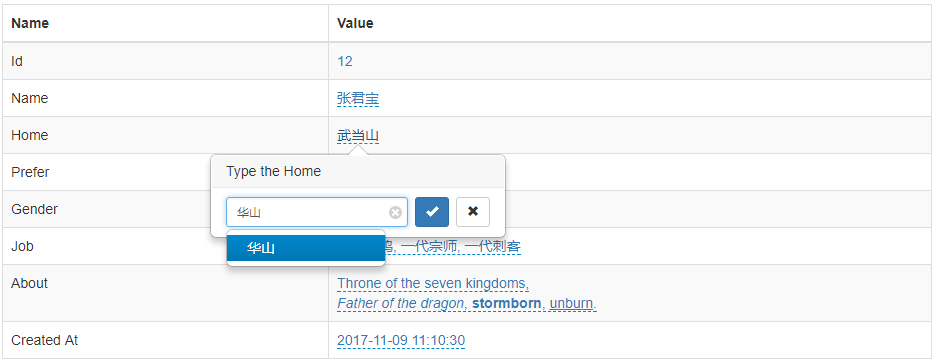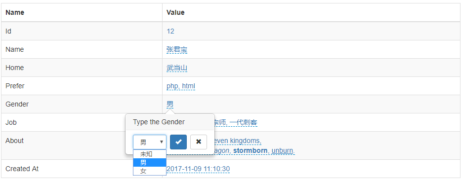 echo $editable->render()->getBody();To get full demo here: https://github.com/xiaohuilam/php-x-editable/blob/dev/example/Editable.php